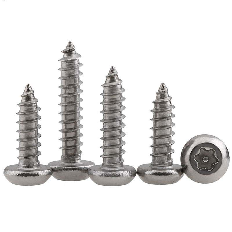 Διάμετροι: #2 έως #14 (μετρικές: M3 έως M8); μήκη: 6mm έως 50mm. Συμβατό με τυπικά εργαλεία ασφαλείας Torx (Tx8 έως Tx40).